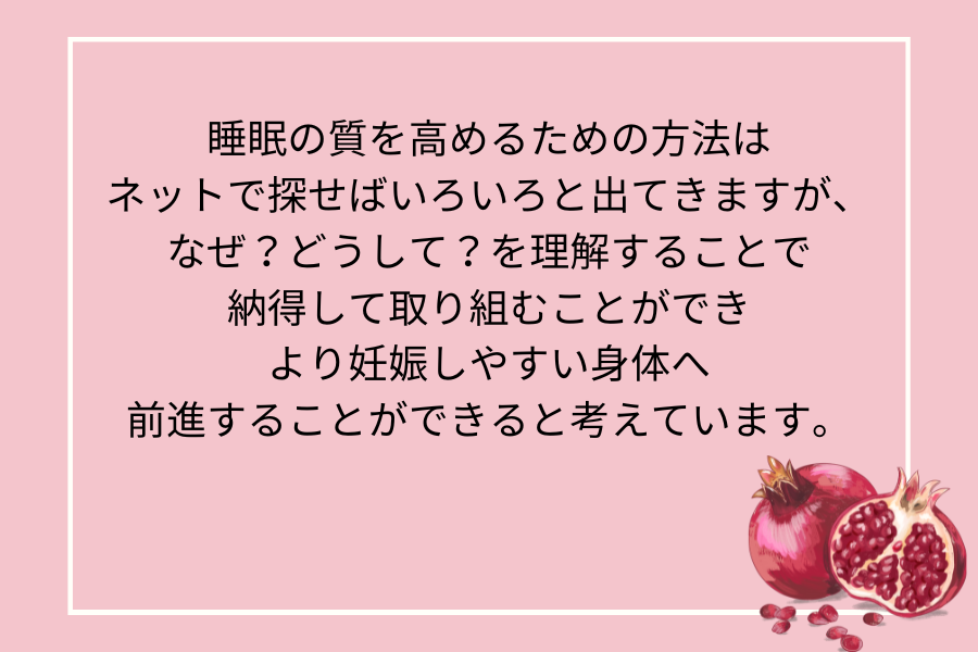 いかがですか?睡眠の質をあげると妊娠にいいことばかりですよね!